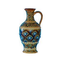 The base has the early Doulton Lambeth stamp and the renowned Hannah Barlow’s initials. Ref: 2416 Hannah Barlow (1851-1916) was a ceramic artists who worked at the Doulton & Co. pottery in Lambeth during the late 19th and early 20th centuries. She was renowned for her contribution to Doulton’s decorative stoneware, especially her distinctive hand-incised and painted designs featuring animals. After studying at Lambeth School of Art, Hannah Barlow started work for Doulton in 1871. She was the first female artist employed by Doulton. Hannah was the only artist at Doulton Lambeth who specialised in sgraffito (incised decoration), where she carved intricate animal designs directly into the clay before firing. Her detailed, lifelike depictions of horses, deer, dogs and farm animals in naturalistic settings are instantly recognisable. Hannah often worked in collaboration with other Doulton artists, including her sister Florence. The prices include delivery to a UK address. International deliveries are welcome, please contact for international postage costs. Internal Ref: 2416