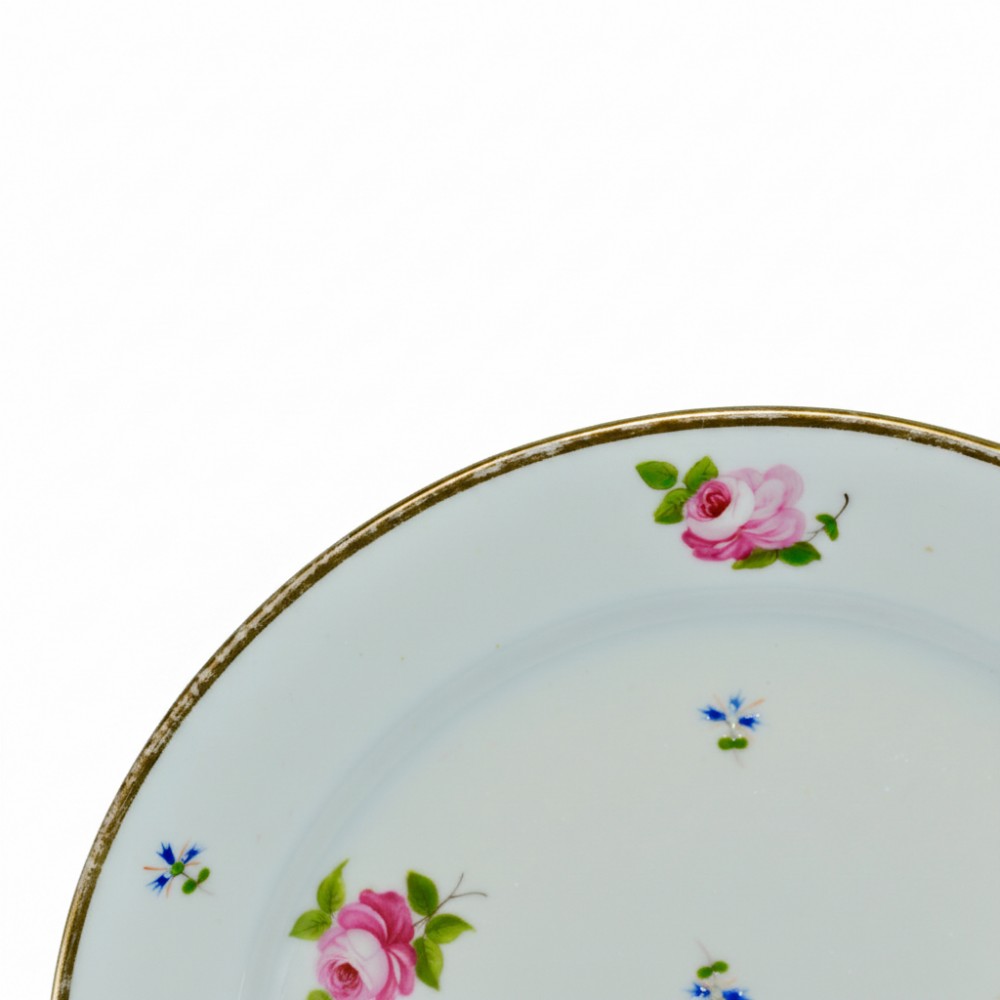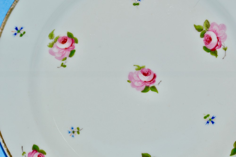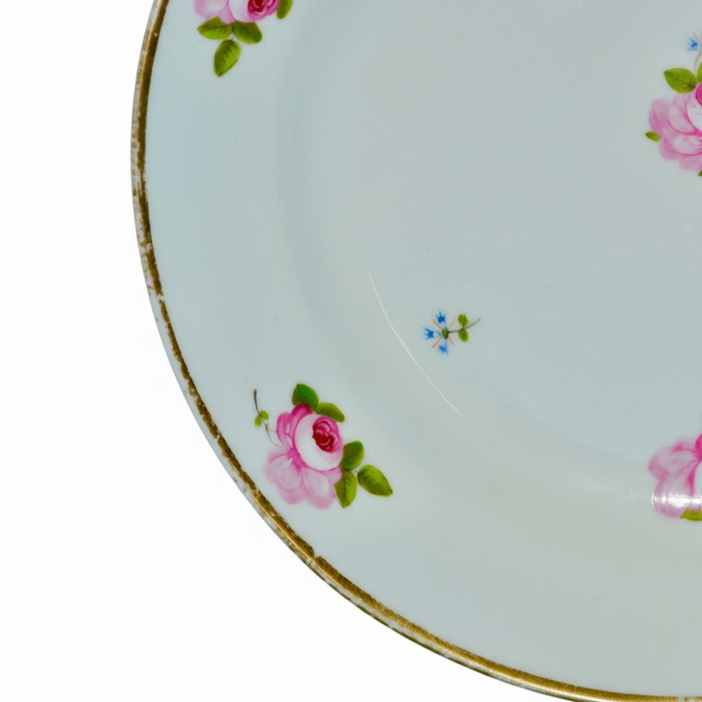 A delightful early 19th Century Swansea porcelain plate. Possibly decorated by William Billingsley and painted with roses and cornflowers. Labelled on reverse showing ex-Sherman collection. No chips, cracks or restoration. Faint surface scratches from useage, together with the expected rubbed gilt on edging. An attractive item and so typical of the wonderful quality of Swansea porcelain. Unmarked. The prices include delivery to a UK address. International deliveries are welcome, please contact for international postage costs. Internal Ref: 2391
