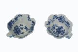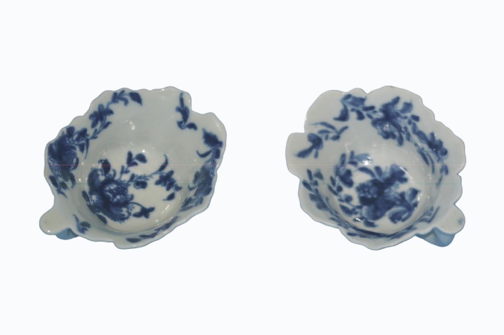 1758-60 Pair of Worcester Geranium Moulded Butterboats