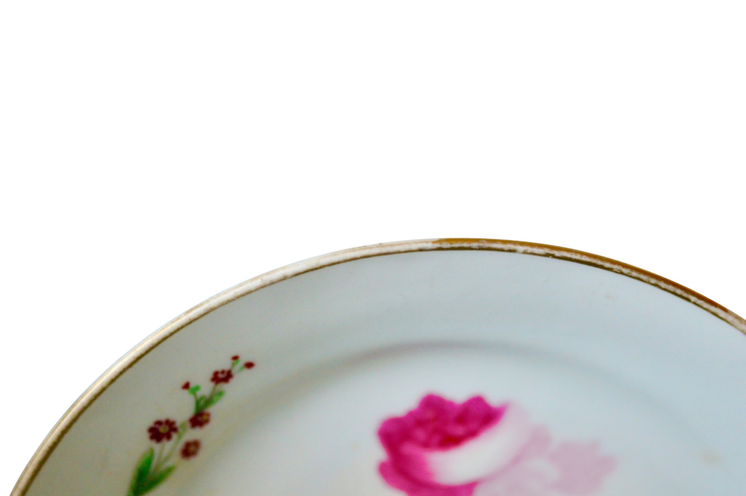 Delightful Swansea Porcelain Dessert Plate. Circa 1818-1820. In the Trident paste, and painted with sprays and sprigs of summer flowers with a plain gilt rim. Impressed with Swansea mark. Width: 19.6 cm. Provenance: Private collection Newport. In good condition with rubbing on the rim gilding and light scratches commensurate with usage and age. The prices include delivery to a UK address. International deliveries are welcome, please contact for international postage costs. Internal Ref: 2398