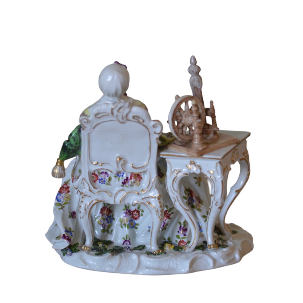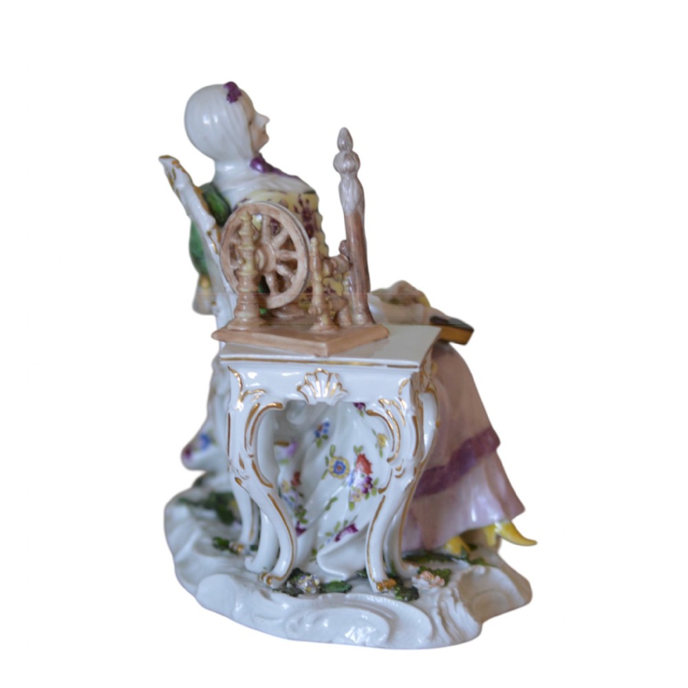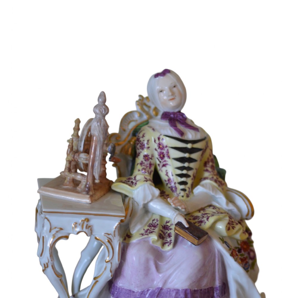 Meissen Porcelain Figure of Lady with Spinning Wheel C1750