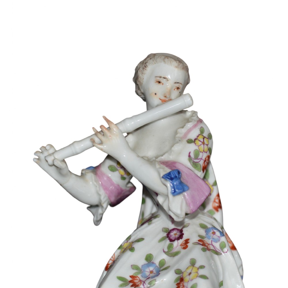 Meissen Porcelain Figure Of Lady Flutist - Mid 18th Century
