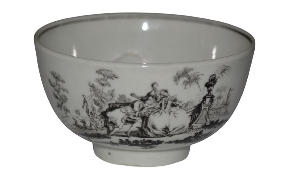 Rare Worcester Smokey Primitive or Transitional Period L'amour Tea Bowl c.1755-1778