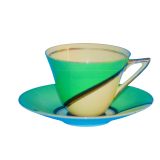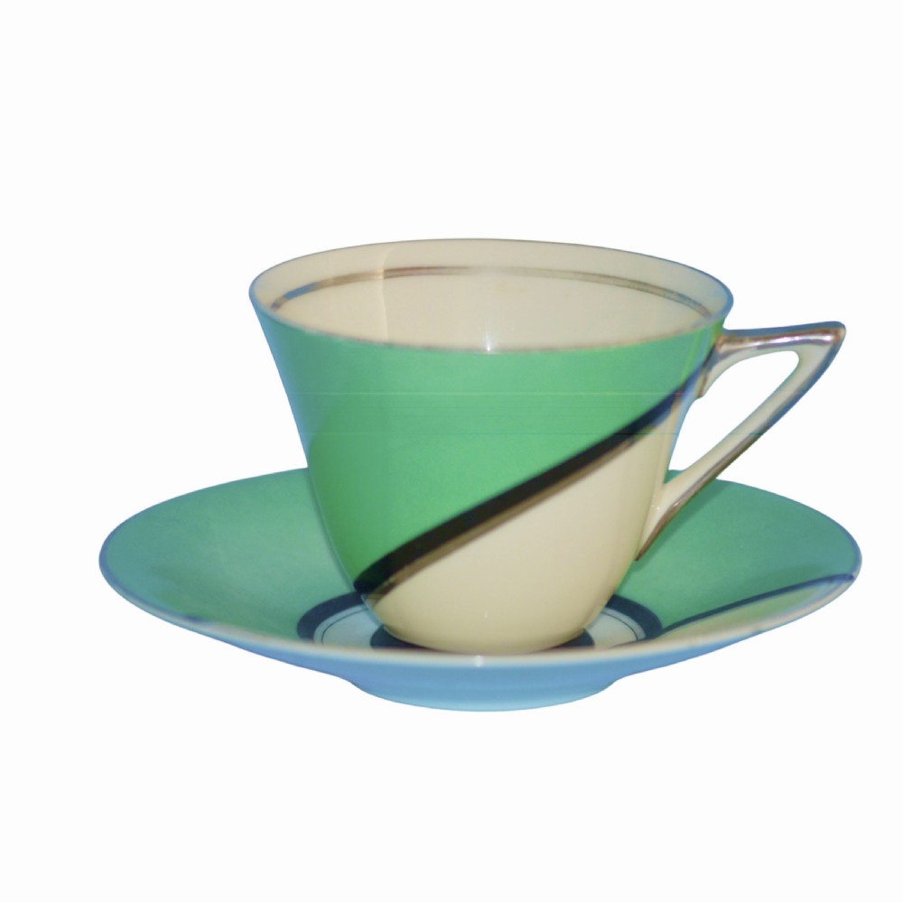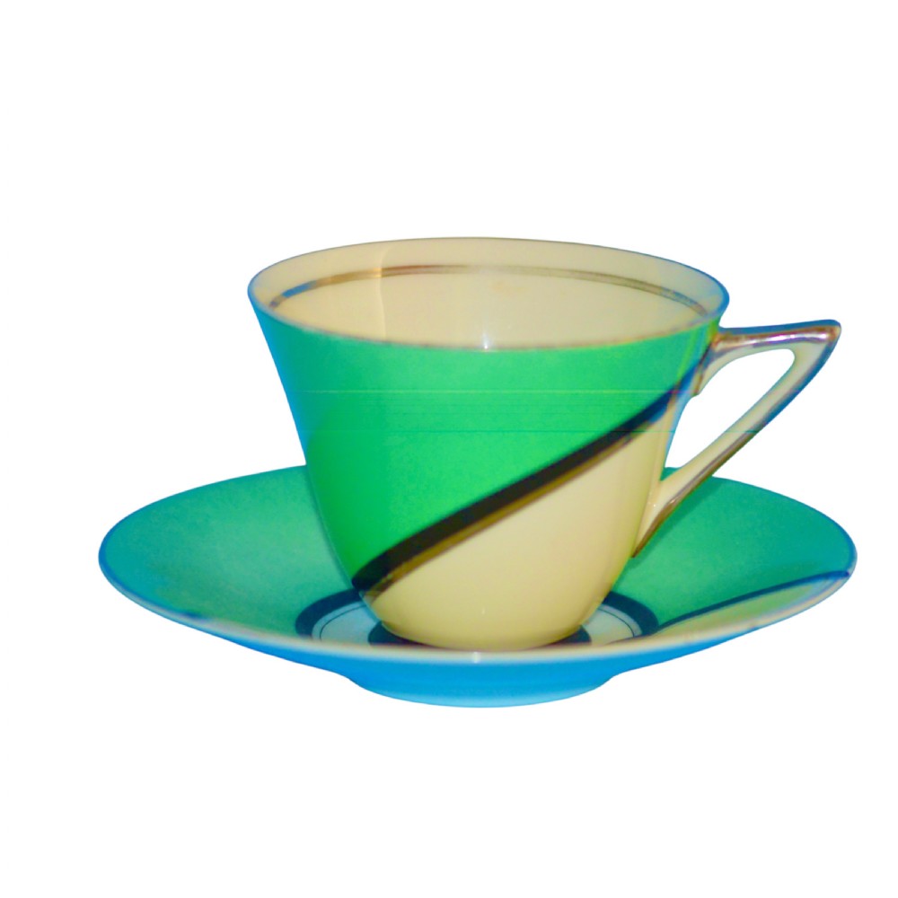 Very attractive Art Deco Royal Doulton Cup and Saucer and matching plate in the 'DE LUXE' pattern. c1930's Cup - 8.8 cm diameter and 7 cms high Saucer - 14 cm diameter Plate - 14.5 cm square These items are in excellent condition with no chips, cracks or restoration and they will enhance any collection or be a wonderful and striking addition to a table. Free UK delivery. International delivery is welcomed but please contact contact for international delivery costs. The prices include delivery to a UK address. International deliveries are welcome, please contact for international postage costs. Internal Ref: 2121
