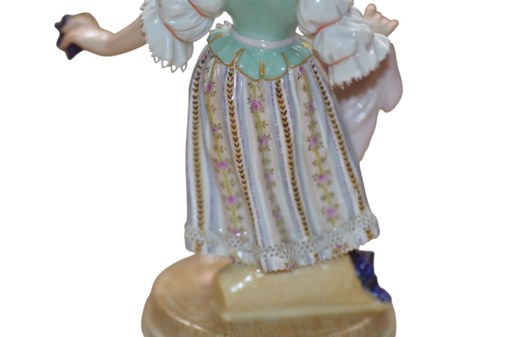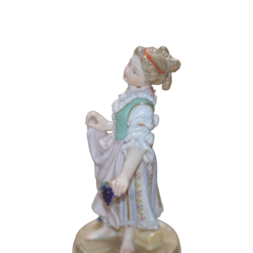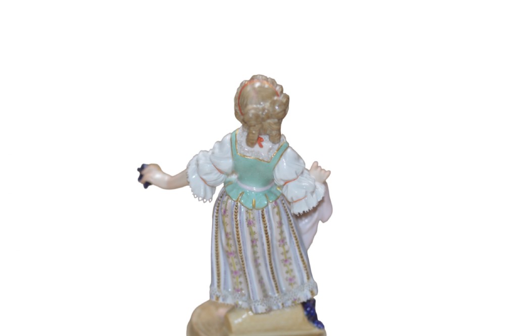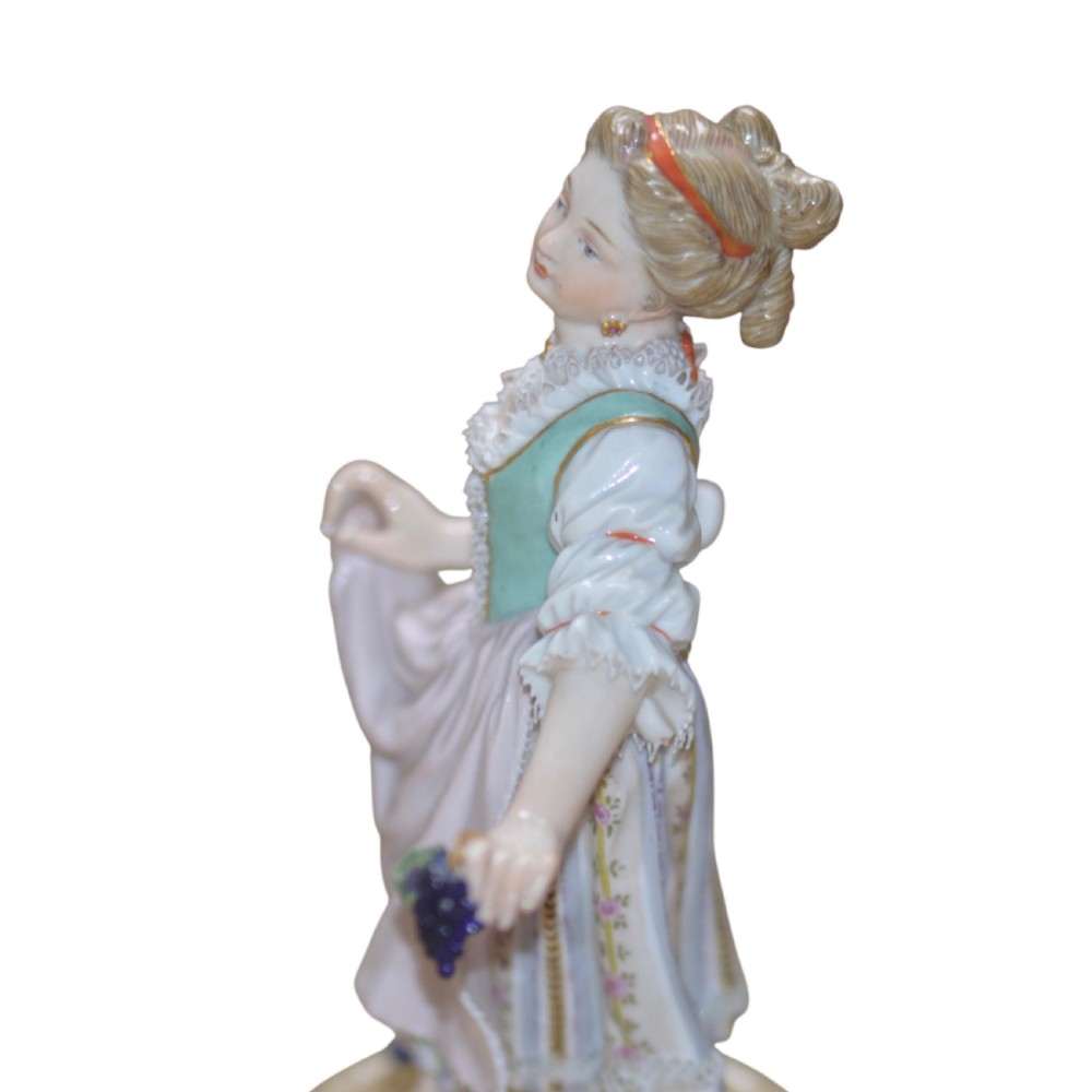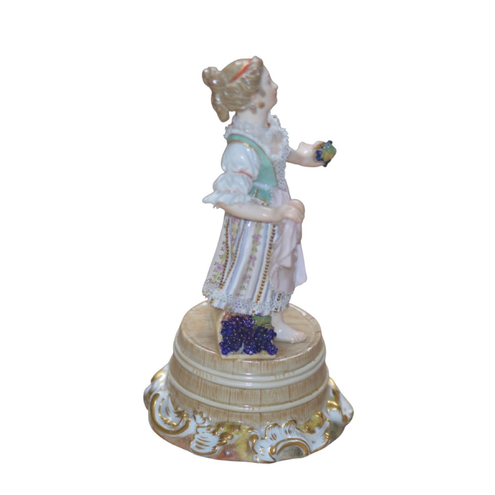 Meissen Porcelain Figure Of A Girl Holding Grapes.