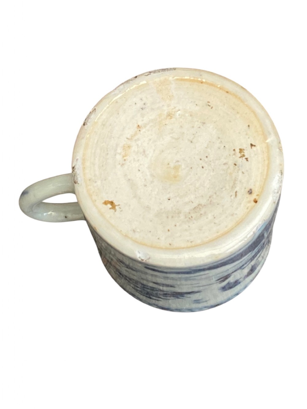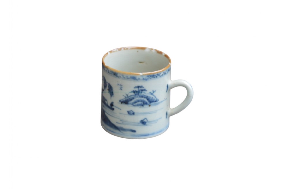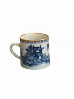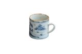 An attractive 18th Century Chinese Porcelain Blue and White Mug. Decorated with a pagoda and landscapes scenes. No cracks or restoration and with only nibbles around the top inner rim and bottom edge to both mugs as shown in the photographs. Still displays nicely Height: 6.4 cm Overall Width including the handle: 9 cm Circumference: 6.4 cm Ref:2396 a The prices include delivery to a UK address. International deliveries are welcome, please contact for international postage costs. Internal Ref: 2396a